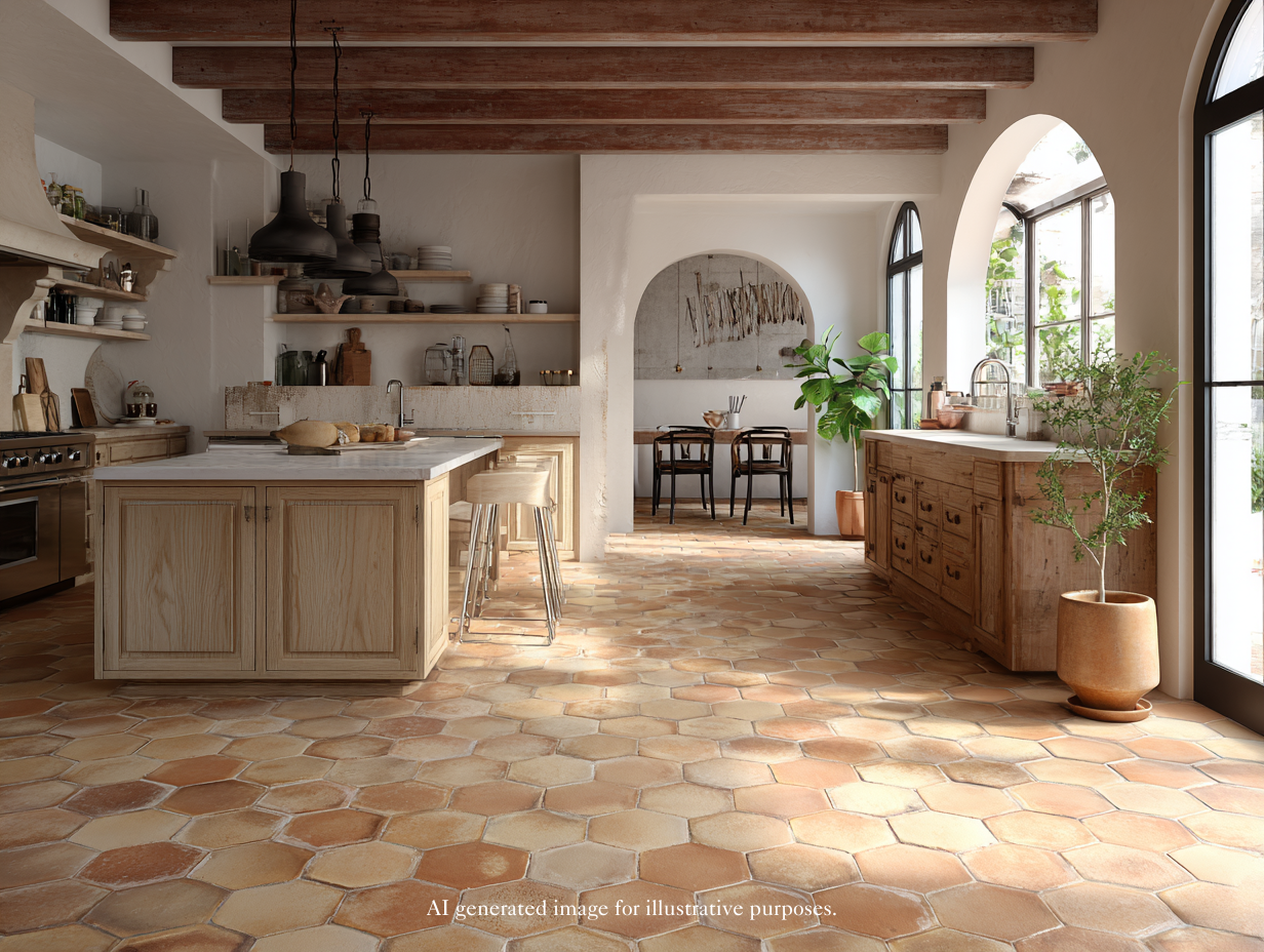 Terra cotta tiles in a luxury kitchen.