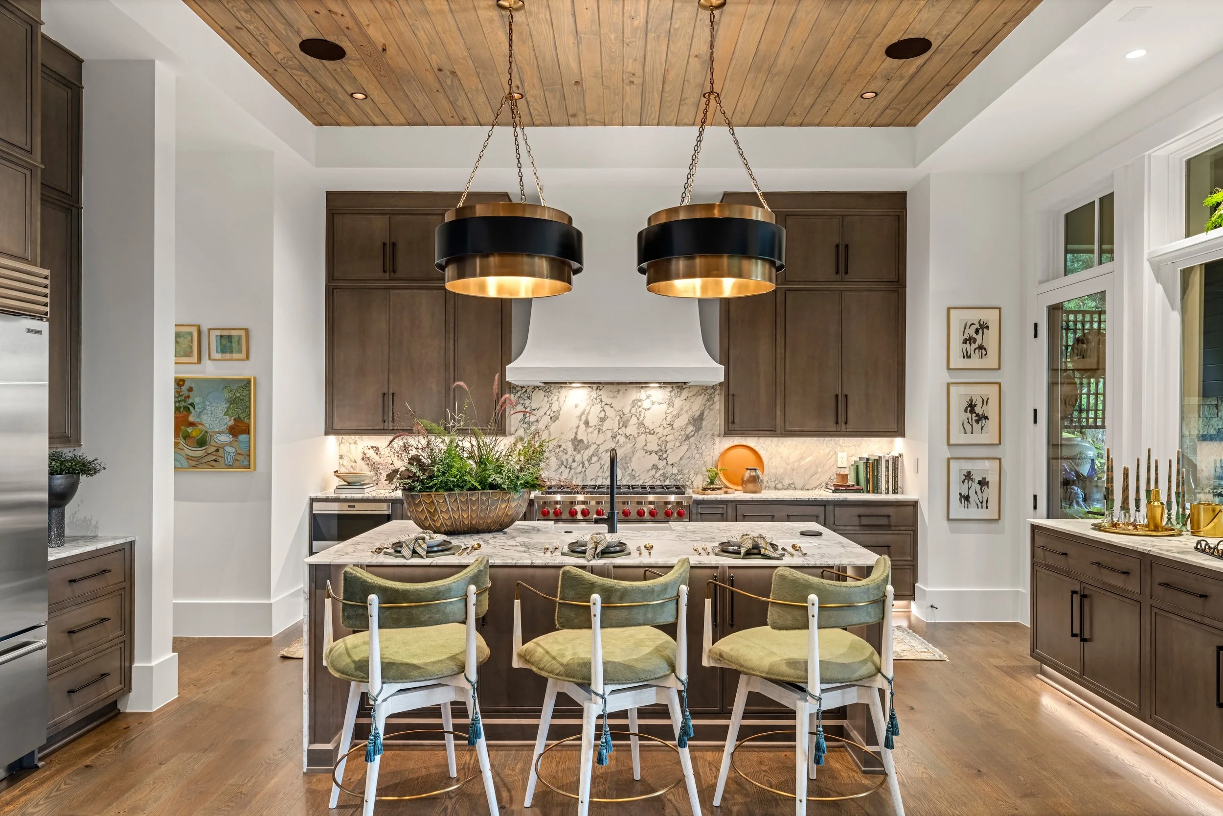 The kitchen at Saratay Falls Lot 5, which was part of the Cashiers Designer Showhouse event in 2025. Organized by the Cashiers Historical Society, the event brings together about a dozen professional interior designers to create unique designs for each room and celebrate the heritage and history of Cashiers.