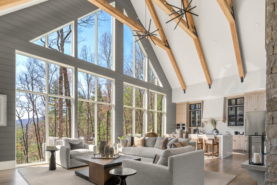The great room in a luxury custom home designed and built by Loudermilk Homes in Saratay Falls in Cashiers, NC.