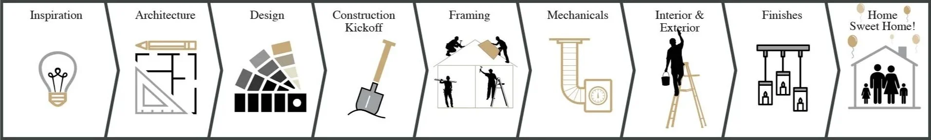 The first three steps set the stage during pre- construction, and the final six stages are designed for the construction process. We’ll bring your home to life, step by step.